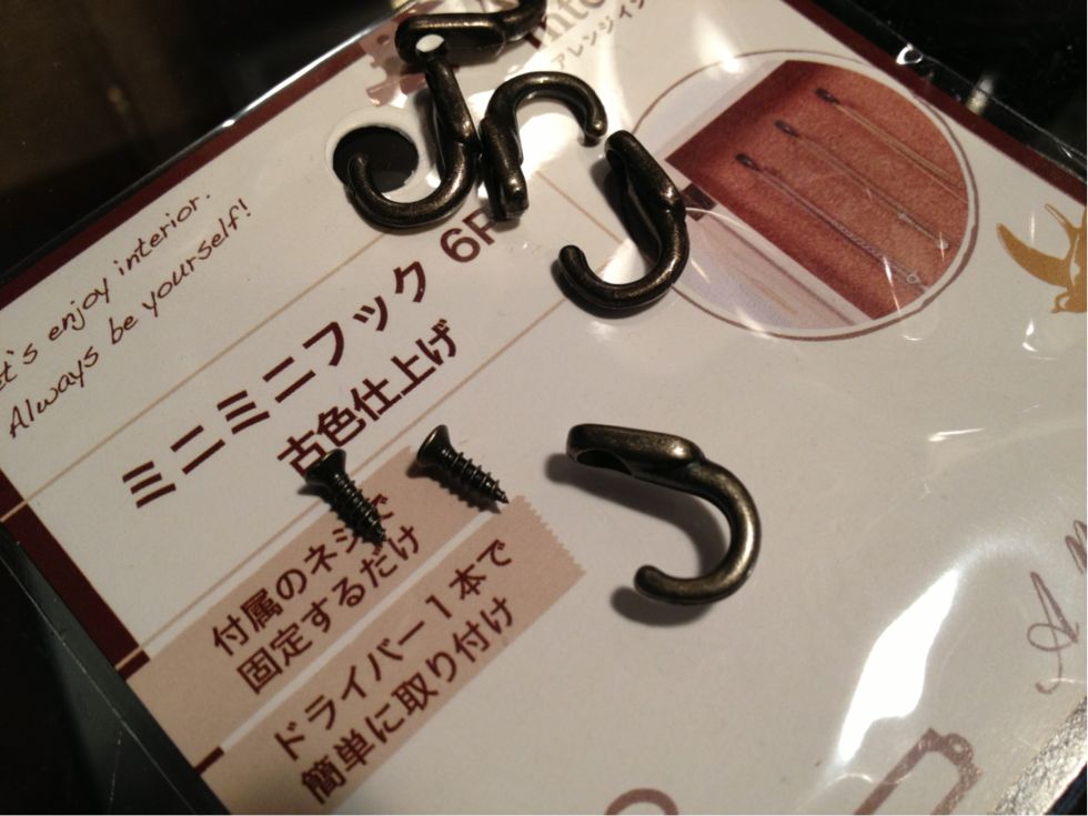 アンティークっぽい素材が欲しかったので100均のSeriaで小さいフックを買いました。