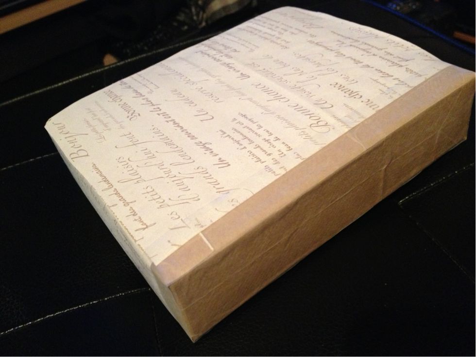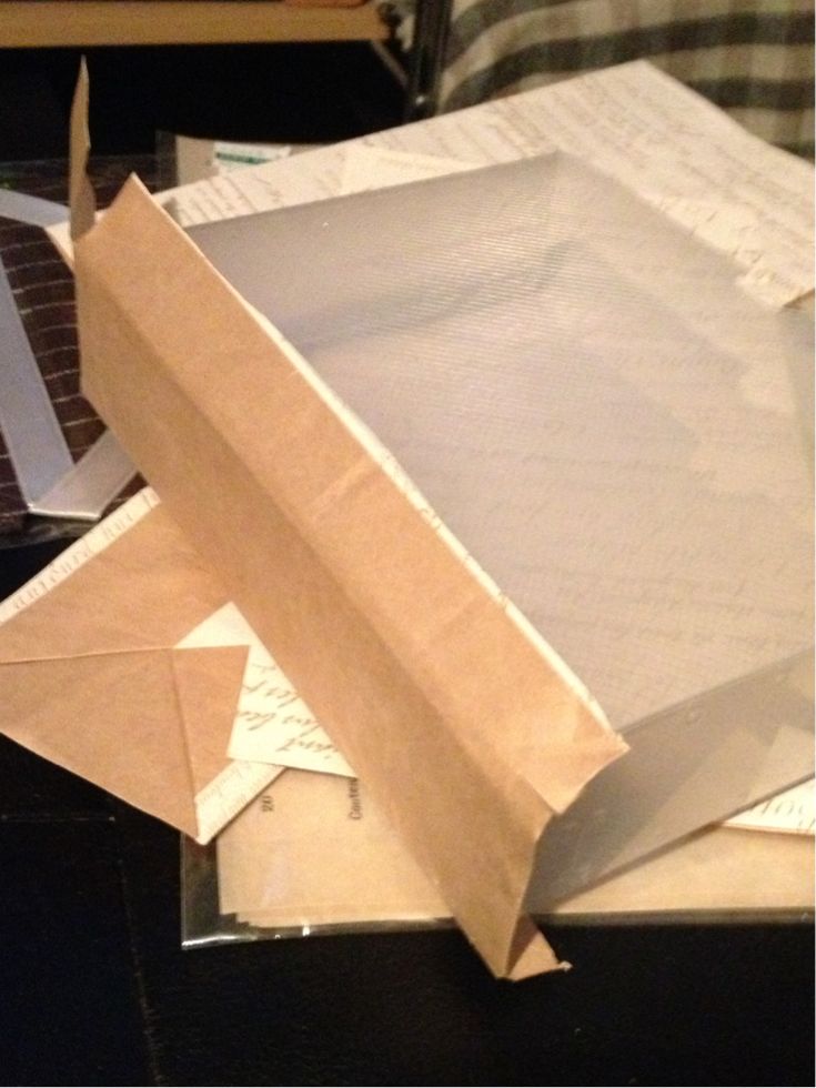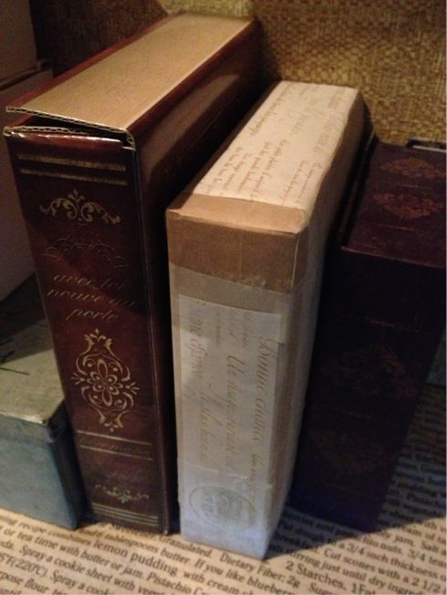 どんどん溜まって年賀状のファイルにコレクションしてましたが、ふと出しっぱ収納にしちゃえ!と思いたち本風にラッピングペーパーを貼っちゃいました。