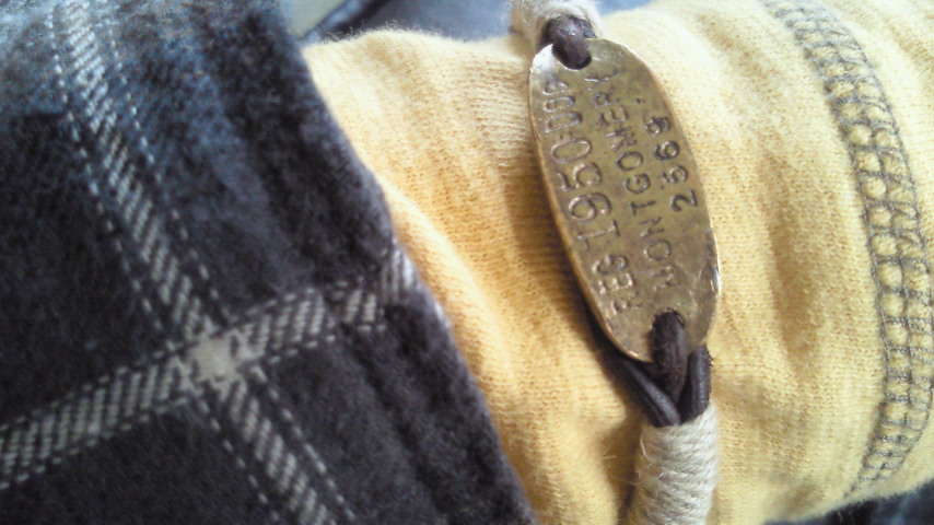 なぜこの部分かというと、この袖口のステッチのカジュアル感がたまらなく好きなのと(変な奴w)自作のアクセサリーをお見せしたかったのと、笑。