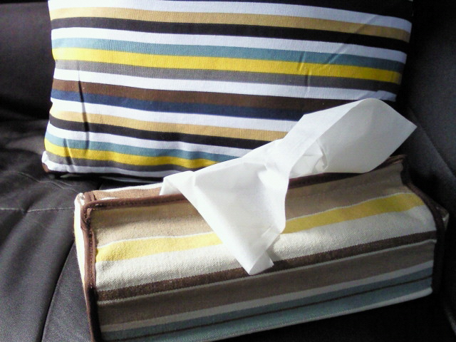 このクッションも時間が経つと色が褪せてこのティッシュカバーのような
