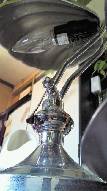 ところでこのライトのシェードの裏側には最初白いペンキが一面に塗られていましたが、あまりにもポロポロと剥げるので「えーい剥がしてしまえ!」とばかりに内側の白ペンキは剥がしてしまいました。