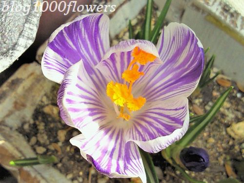 ←秋に植えたクロッカスが初めての花を咲かせました。