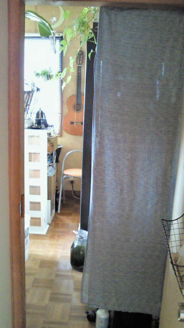 というのもその部分に熱帯魚のラックがあって人が来ると魚が驚くので水槽が見えないようにしています。