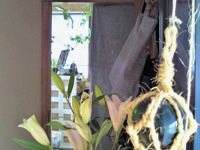 今日は買い物に行って、ユリ(オリエンタルリリー)の細いのが一本150円だっ
